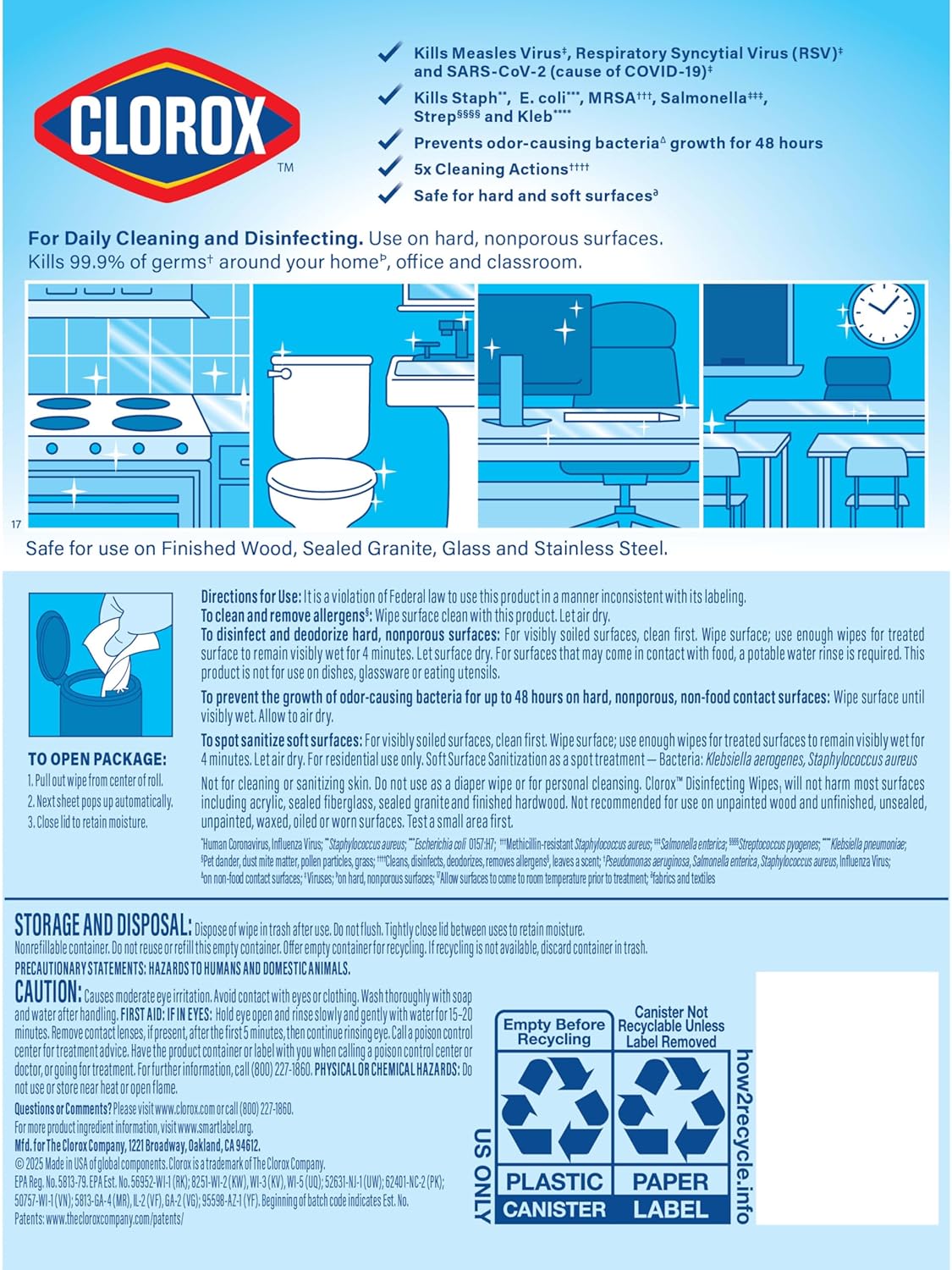 • MULTI SURFACE WIPES: These disinfecting wipes are safe to use on over 100 surfaces, including finished wood, sealed granite, glass and stainless steel in the kitchen, bathroom or high touch places