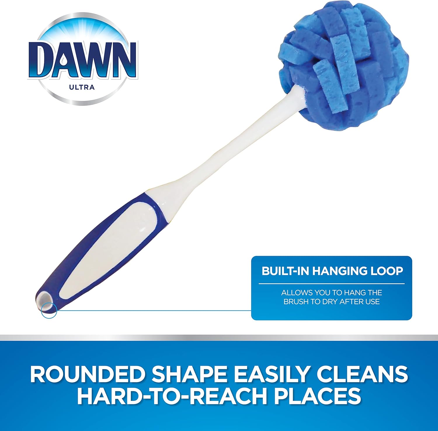• LAYERED SPONGE HEAD: Builds up bubbles and foam with just a drop of soap for a long-lasting lather, while the rounded shape easily cleans hard-to-reach places